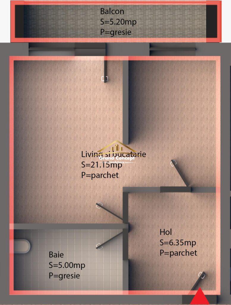 Compartimentare: Living+ Bucatarie– 21.15 m² / Hol – 6.35 m² / Baie- 5 m²