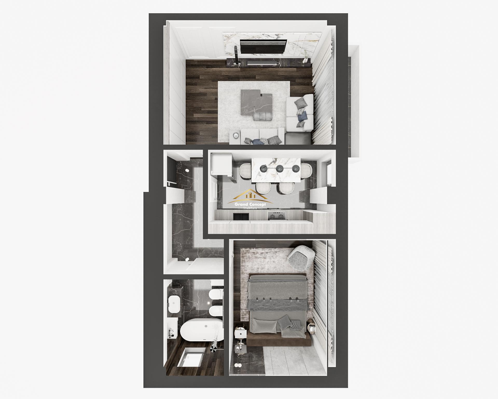 Agentia Imobiliara Grand Concept va propune spre vanzare un apartament cu 2 camere situat intr-un bloc nou din zona Miroslava, cu suprafata de 54.70 mp.