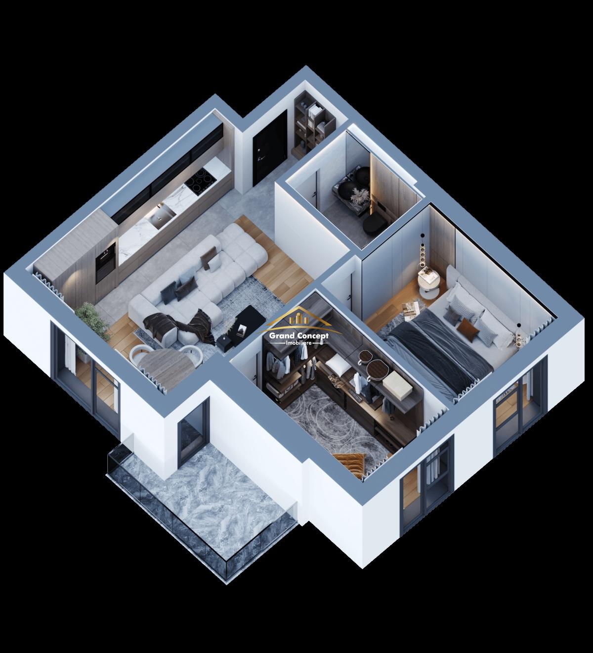 Agentia Imobiliară Grand Concept va ofera spre vanzare un apartament cu 2 camere, cu o suprafata totala de 60.65 mp din care 54.60 mp util si 6.05 mp balcon, situat la etaj intermediar, intr-un complex rezidential nou, in Iasi, zona Rosetti.